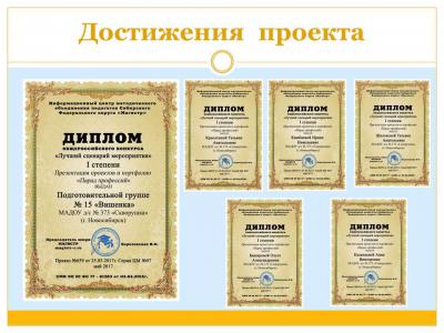 Наша проектная группа надеется, что в результате проведенных нами мероприятий наши выпускники смогли получить первые представления о многообразии профессий, расширили свой кругозор, а главное смогли презентовать своё «досье успеха», в котором отражается всё интересное, что происходит в жизни ребенка. Таким образом, они сделали первый шаг в открытии своего «Я».