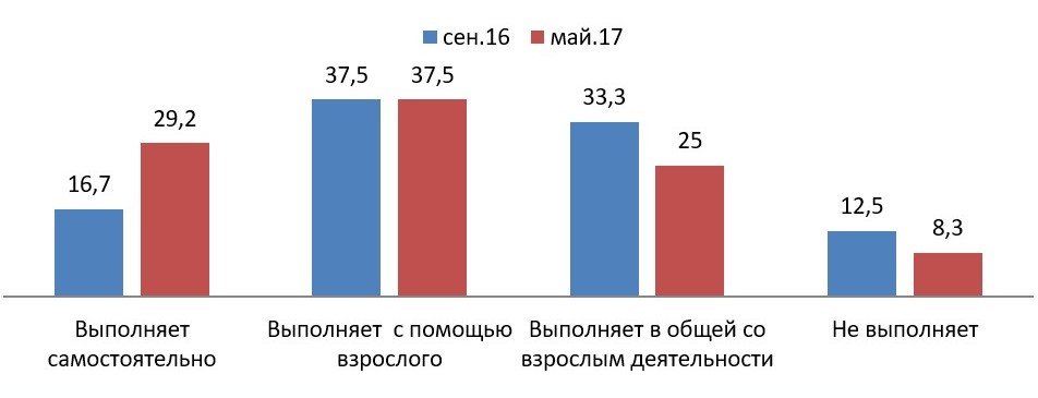 1. Побуждения к игровой деятельности стали более устойчивыми, проявляются стабильно, повысилась инициативность и активность у 16,7% детей группы.
