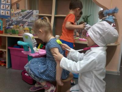 Кроме того, мы помогаем детям овладеть сюжетно-ролевыми играми. Игра – главное занятие в жизни дошкольника. В ней они отображают всё, что видят вокруг: проявления жизни, деятельность взрослых и их отношение к окружающему. И ребёнок начинает социализироваться, моделируя своё поведение, развивая коммуникативные и лидерские качества, оценивая свои поступки и поступки сверстников. К сожалению, у современных детей настолько бедный опыт, что приходиться тратить огромное количество времени на обучение элементарным игровым действиям и помогать в развитии сюжета. Возникает много трудностей при распределении ролей и решении спорных ситуаций внутри игры.