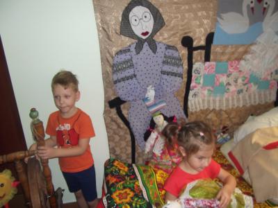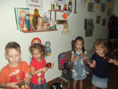 Наконец, самый сложный вид театра – это «сценический» театр, когда ребенок сам становится персонажем. В процессе работы по театральной деятельности все тексты спектаклей корректируются логопедом: заменяются, вставляются слова с учетом возможностей детей. На музыкальных занятиях мы разучиваем русские народные песни, хороводы, заклички, учим играть детей оркестром на народных инструментах. На занятиях по рисованию мы расписываем ложки, всевозможные игрушки-свистульки, фартуки, матрешки.