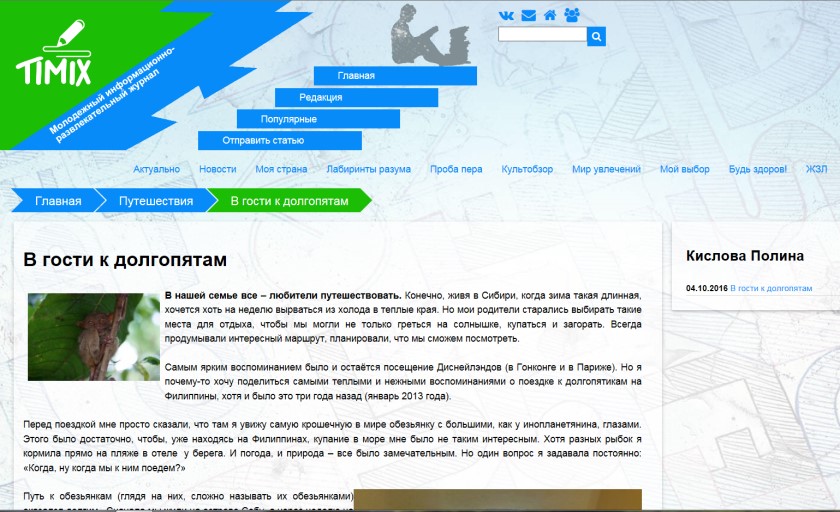 «Публикации учащихся в журнале «Timix»