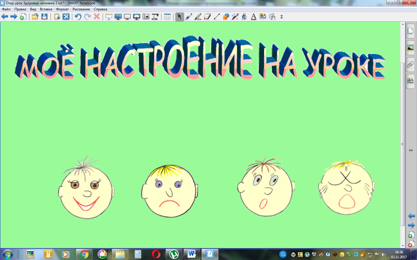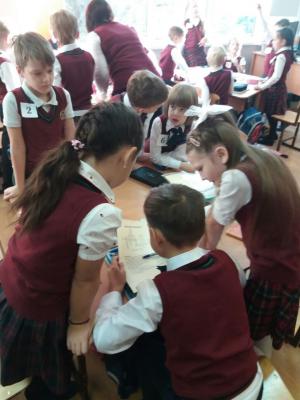 После завершения работы ребята продемонстрировали результаты и прошли квкст по командам, таким образом, закрепив материал урока еще раз. На этапе рефлексии ребята по таблице провели самооценку и оценку группы. Желающим было предложено провести оценку эмоционального состояния на уроке. Некоторые ребята высказывались устно, другие рисовали смайлики, а одна девочка сочинила небольшое четверостишие. Таким образом, цель урока была достигнута.