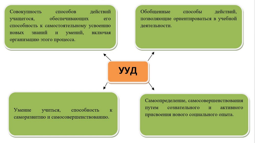 В последнее время в практике образования все чаще звучит термин – современный урок. Каким он должен быть, изменились ли требования к современному уроку? Одним из приоритетных направлений ФГОС являются требования к результатам освоения ООП. Результаты сформулированы как способы действий, которыми должен овладеть ученик. Результат – это овладение ребенком учебной деятельностью, умением учиться. Меняются требования к результатам, должен меняться учитель, а, следовательно, и урок должен быть другим. В основе стандартов лежит системно-деятельностный подход, позволяющий активное формирование универсальных учебных действий. Что же такое УУД и какими педагогическими приемами должен владеть учитель для формирования УУД.