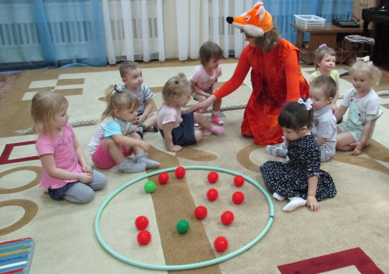 В ходе проведения физкультурного досуга «На волшебной полянке у лисички-сестрички» нами было отмечено, что воспитанники вели себя непосредственно, двигались без особого напряжения, использовали те двигательные навыки и умения, которыми они уже владеют, проявляли своеобразный артистизм и эстетичность в движениях. Во время занятийно-игровой деятельности было предложено несколько заданий: пройти по корригирующим дорожкам, несколько раз перепрыгнуть канат, поиграть со специальными массажными мячиками – «ежиками», «собрать урожай» в корзину, убежать в домик и спрятаться от лисы, с которыми все малыши справились.