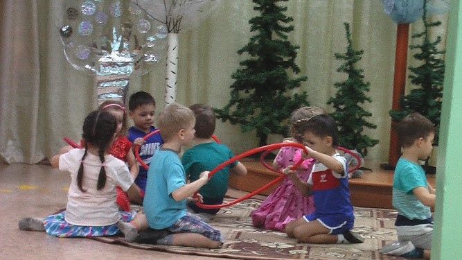 Участникам не следует вставать в обруч, пока звучит музыка. |