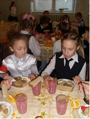 Занятия о пище проводятся прямо в столовой, где изучаются правила хорошего тона, теория закрепляется практикой, формируется положительный настрой, закрепляются здоровые принципы питания (тщательное пережевывание, разумное отношение к приему жидкости, в том числе воды.) Данные занятия приносят детям чувство удовлетворения, легкости и радости.