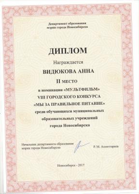 В 2017 году класс участвовал в VIII Городском конкурсе плакатов «Мы за правильное питание» среди школьников Новосибирска. В номинации мультфильм «Сказка о Простаке, Толстяке и Обжоре» занял второе место.