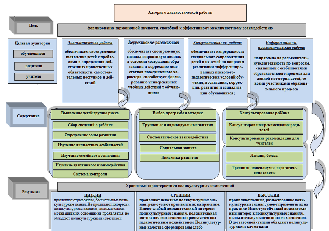 Порядок работы и критерии по оценке результатов предусмотрены «Программой воспитательной работы». Алгоритм диагностических мероприятий представлен на рис. № 2.