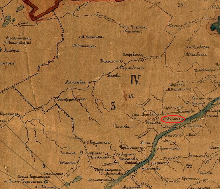 Карта Томской губернии 1900 г. (рис. 2) дает нам возможность увидеть территориальные рамки Ординской волости на рубеже XIX–XX столетий. Как мы видим, в нее входило более 20 населенных пунктов, многие из которых существуют и в наши дни – сёла Вагайцево, Кирза, Красный Яр, Рогалёво, Спирино, Ужаниха, Усть-Луковка и пр.