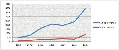 Рис. 3. Динамика количества дворов и численности населении в с. Ордынском