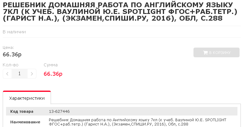 В доказательство того, что товар этот продаётся в магазинах широко и основательно приведём ниже описание конкретного решебника на официальном сайте книжного магазина Сибверк: