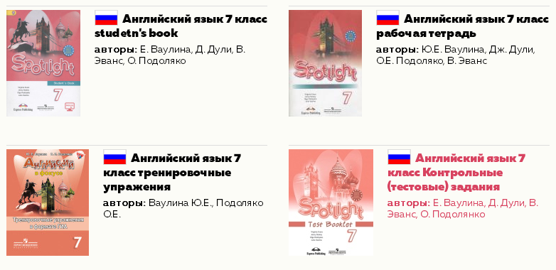 Шаг первый – выбирается название УМК и год обучения, например, Spotlight 7 (рис. №2).