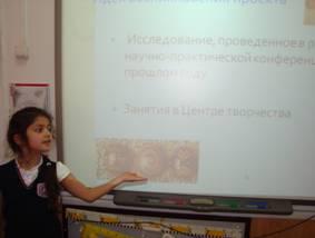 Одно из исследований – «Звезды Победы», где дети выступали в роли маленьких журналистов, изучая путь ветеранов по домашним архивам и беседуя со своими родными, а также использовали как источник информации интернет-ресурсы. Итогом стало создание самими детьми мультимедийной презентации «Солдаты Великой Победы».