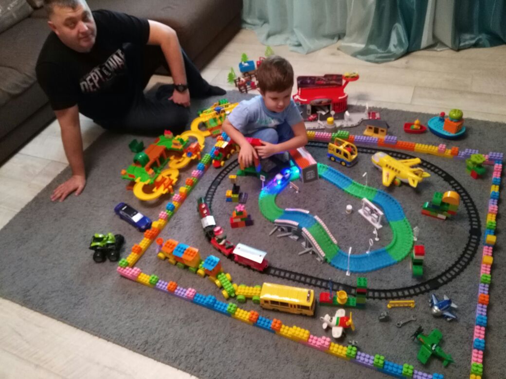 В совместных ежедневных играх наши дети становятся более уверенными, самостоятельными и активными. Они начинают сами выкладывать кубики из контейнера, пробовать строить башенки, дорожки, домики, целые сюжетные композиции.