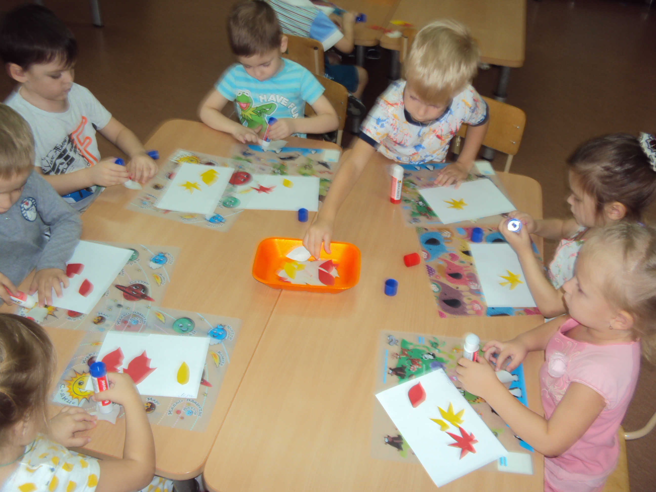 В непосредственно образовательной деятельности по художественно-эстетическому развитию эффективно используем прием комментирования, который заключается в речевом сопровождении ребенком своих действий. Например, «Что ты сейчас делаешь? Что будет следовать после этого? Как ты считаешь, какой цвет лучше будет сочетаться с красным?» и т. д.