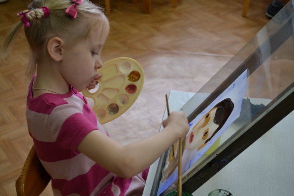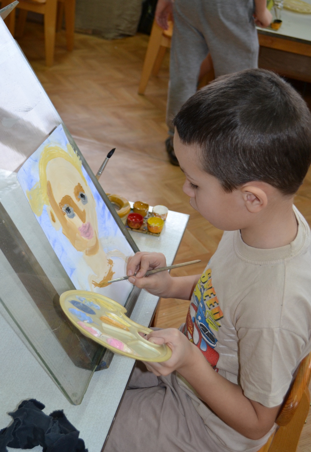 – Наверное, приятно написать портрет своего друга? А если «да», то тогда прямо сейчас давайте пойдем в нашу мастерскую и напишем!