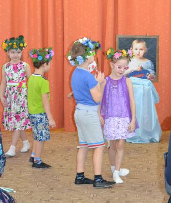– Музыка вам подскажет, как двигаться. Обменяемся венками и говорим друг другу добрые слова. (Дети обмениваются венками, произносят добрые слова).