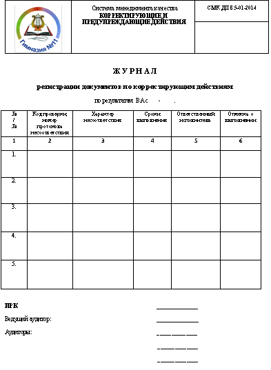 – предполагаемые корректирующие действия. Например: списать устаревшие документы и упорядочить хранение; ввести единую структуру календарно-тематического планирования;