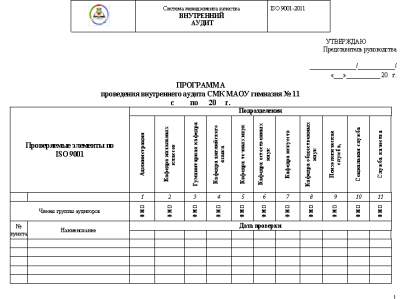– цель аудита: соответствие требованиям ГОСТ ISO 9001:2011;