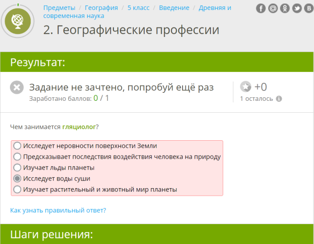 Рис. 2. Учи.ру. Реакция системы на действия ученика