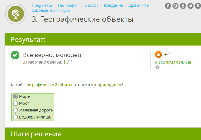 Рис. 5. Якласс. Система хвалит обучающегося