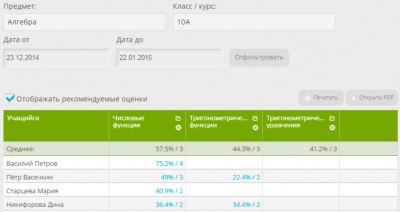 Рис. 6. Якласс. Отчёт по классу