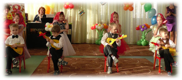 1. Развитие музыкальных способностей детей через восприятие музыки, пение, игре на музыкальных инструментах, танцах и играх.