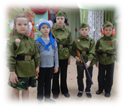 Особое значение в рамках нравственно-патриотического воспитания имеет тема Защитников Отечества – 23 февраля, «Слава армии любимой». Эта тема очень любима детьми. На музыкальных занятиях мы говорим с детьми о защитниках нашей Родины. Дети поют песни, читают стихи, выполняют торжественные перестроения, играют в военные игры, перевоплощаясь в лётчиков и моряков. Песни этой тематики легко запоминаются ребятами, т.к. написаны в темпе марша, содержание их созвучно с желанием ребят быть сильными и смелыми как защитники нашей Родины.