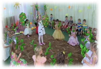 Чувство любви к родной природе – еще одно из слагаемых патриотизма. Именно воспитанием любви к родной природе, можно и нужно развивать патриотическое чувство дошкольников. Выразительность музыкального языка, яркость и поэтичность стихов помогают детям почувствовать теплоту и сердечность песен, воспевающих красоту родной природы. Через восприятие музыкальных образов, вызывающих у детей разнообразные эмоциональные переживания, я воспитываю у них такое же отношение к образам родной природы. Каждый временной цикл (осенний, зимний, весенний) я заканчиваю тематическим праздником или развлечением, в основе которых лежат народные праздники или произведения отечественных авторов. К ним с нетерпением готовятся не только дети, но и взрослые, помогая в изготовлении костюмов и атрибутов к этим мероприятиям. Дети с удовольствием слушают музыкальные произведения, в которых переданы образы животных, птиц, образы природы, что способствует развитию воображения и представления о мире.