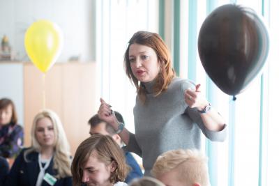 – К каждой группе стульев привязан один шарик, символизирующий цвет шляпы (черный, красный, желтый, белый, зеленый, синий).