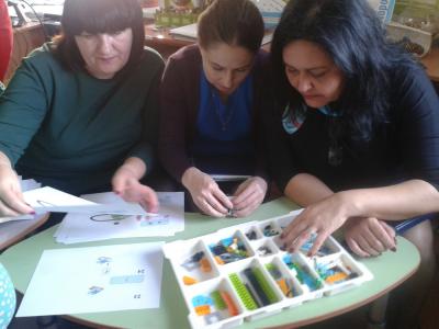 Прежде чем приступить к апробированию робототехники с детьми, был проведен мастер-класс с педагогами нашего ДОУ, чтобы они сами попробовали и прочувствовали весь процесс создания робота и его «оживления».