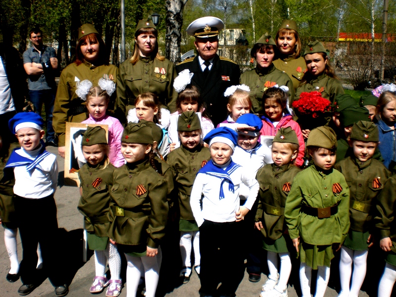 В тесном взаимодействии с родителями была проведена поисковая работа в кругу семьи. Побеседовав с родителями, бабушками и дедушками, дети приносили имеющиеся фотографии близких, принимавших участие в освобождении нашей Родины. Ребята, приходя в детсад, делились друг с другом тем, что они узнали, приносили в группы фотографии, рассказы, записанные родителями со слов детей.