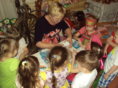 В нашем учреждении с 2009 года создан музей «Русская изба» Основателем, вдохновителем и руководителем музея является воспитатель Болотина Светлана Владимировна. Развивающая среда нашего музея «Русская изба» создавалась совместно с родителями и детьми, которые подбирали экспонаты: предметы народных промыслов: матрешки, дымковские игрушки, хохломскую посуду, гжельскую посуду и игрушки, жостовские подносы, филимоновские свистульки. В результате совместной творческой деятельности воспитателя, воспитанников и родителей в мини-музее появились самодельные расписные матрешки, лепная посуда и другие удивительные поделки из разнообразных материалов, дидактические игры. Ведь именно в этом возрасте возникают большие возможности для систематического и последовательного нравственного и патриотического воспитания детей. Происходит формирование духовной основы ребенка, эмоций, чувств, мышления, процессов социальной адаптации в обществе, начинается процесс осознания себя в окружающем мире. Именно этот отрезок жизни - является наиболее благоприятным для эмоционально - психологического воздействия на ребенка. Яркие впечатления о родной природе, об истории родного края, о Родине, полученные в детстве, нередко остаются в памяти человека на всю жизнь и формируют у ребенка такие черты характера, которые помогут ему стать патриотом и гражданином своей страны.