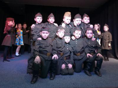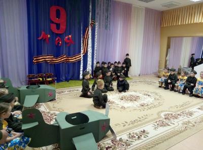 Воспитанники старшей группы № 10 показали театральную постановку «Смуглянка» по мотивам художественного фильма «В бой идут одни старики». В этой группе уже третий год функционирует театральный кружок «Успех». Руководит кружком – воспитатель высшей категории Козлова Г.М. Родители являются активными помощниками педагогов. Они изготовили из картонных коробок самолеты, помогли в оснащении выступления костюмами. 9 мая дети выступили со своей композицией в ДК «Академия» на малой сцене. Наши воспитанники были самыми маленькими участниками торжественного мероприятия. Им долго аплодировали, а мы, взрослые, были рады настоящему успеху наших детей.