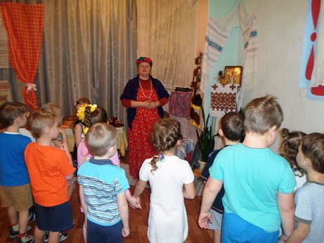 Старших дошкольников, которым уже доступно освоение духовно-нравственных и эстетических ценностей народной культуры, приобщаем к исторической памяти народа, к его художественному наследию, к традициям проведения праздников, досугов, фольклорных посиделок, согласно народному календарю. Окружающие предметы, впервые пробуждающие душу ребенка, воспитывающие в нем чувство красоты, любознательность, должны быть национальными. Это помогает детям с самого раннего возраста понять, что они – часть великого русского народа.