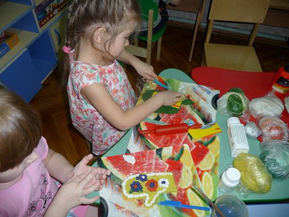 Выбрав работу с соленым тестом. Тесто замешивала вместе с детьми и при их активной помощи. Тесто можно помять, понюхать, высказать свое впечатление от соприкосновения. Да и сам процесс очень важен для детей.