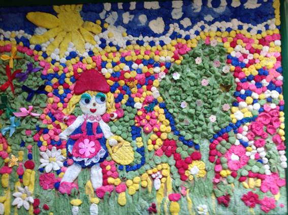 Принцип данной техники заключается в скатывании мелких шариков и осуществлении налепов круглой формы на силуэтное изображение или на фон работ. В результате получаются яркие объёмные картинки.