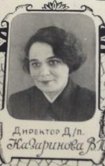 Казаринова Варвара Пантелеймоновна – директор Дворца (1947 – 1960 гг.); дочь основателя Сибирской краевой научной библиотеки (Новосибирская государственная областная научная библиотека) – Пантелеймона Казаринова. Начинала как педагог, учитель русского языка и литературы, во Дворце занималась не только общим руководством, но и литературным кружком. Позднее В.П. Казаринова работала директором театра кукол, директором ТЮЗа, одна из первых общественных директоров Дома актера. Варвара Пантелеймоновна знала, дружила, общалась практически со всей творческой интеллигенцией города на протяжении полувека, привнося в жизнь дух подлинной культуры, тепло и доброжелательность.