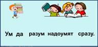 -Познакомимся с новой пословицей. Прочитайте. Объясните. Ум да разум надоумят сразу. -Запишите в тетрадь. =) Пусть эта пословица станет девизом нашего урока.