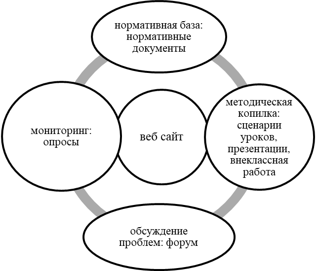 Координирующие группы ответственны за проведение совместных мероприятий между школами и внутри сетевого сообщества. Группы развития – самые многочисленные, свой вклад они вносят посредством поддержания и внедрения новых идей в своих школьных коллективах. Исходя из запросов учителей, наполнение веб сайта можно представить в виде схемы.