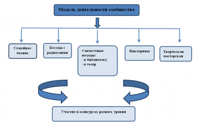Цель сообщества – организация активной читательской деятельности, общения детей и взрослых, воспитание здоровой культурной семьи через встречи, викторины, походы в библиотеку, в театры города.