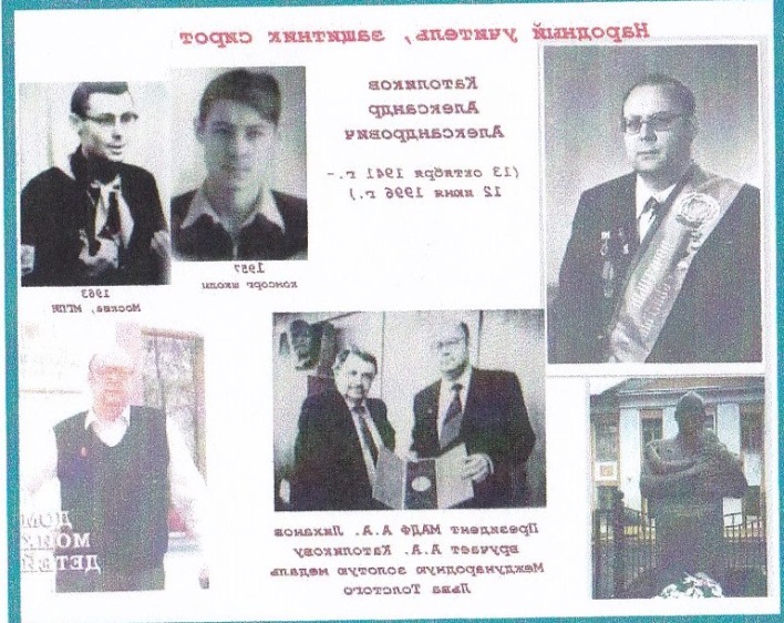 - О Александре Александровиче Католикове, выпускнике 1961 года, Заслуженном учителе СССР, Почетном гражданине г. Сыктывкара. Жизнь этого человека – настоящий подвиг. В 37 лет, спасая детей из застрявшего на железнодорожном переезде автобуса, он потерял обе ноги. Уже будучи инвалидом, А.А. Католиков стал директором самого отсталого детского дома в г. Сыктывкаре и сумел превратить его в подлинный семейный дом. Воспитанники считали его своим отцом. Девиз жизни А.А. Католикова: «Все дети наши, и мы за них в ответе». А на памятнике А.А. Католикову высечены слова «Народный учитель, защитник сирот». В школьном музее хранятся его статьи, фотографии, письма. В них он много раз вспоминает родную школу, учителей.