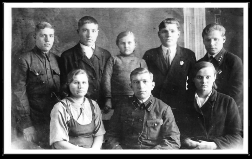 В нижнем ряду слева моя прабабушка, рядом прадедушка. Еще на фото в центре их дочь-моя бабушка и родные братья прабабушки, которые в годы войны трудились в тылу и воевали.
