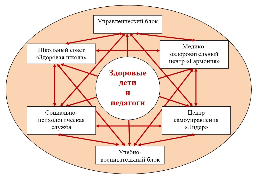 В Информационно-экономическом лицее (ИЭЛ) города Новосибирска создана здоровьесберегающая образовательная среда, включающая следующие структурно-содержательные компоненты: медико-оздоровительный центр «Гармония», который осуществляет оказание лечебной и профилактической помощи; социально-психологическая служба; школьный совет «Здоровая школа»; центр самоуправления лицеистов «Лидер» и др. (рис.1).