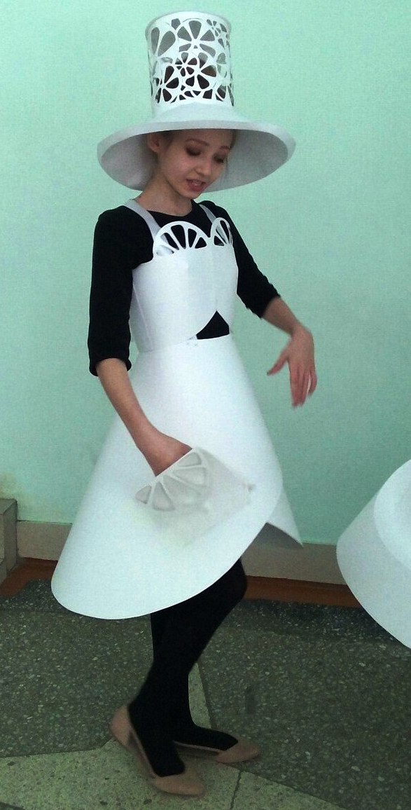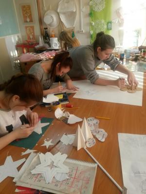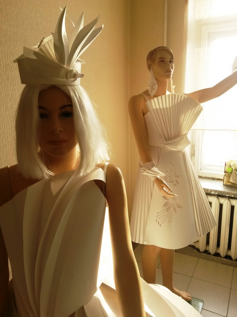 На втором году обучения мы приступили к реализации проекта «Авторские модели платья». Для меня как руководителя студии, важно использование различных способов и приемов работы с бумагой.