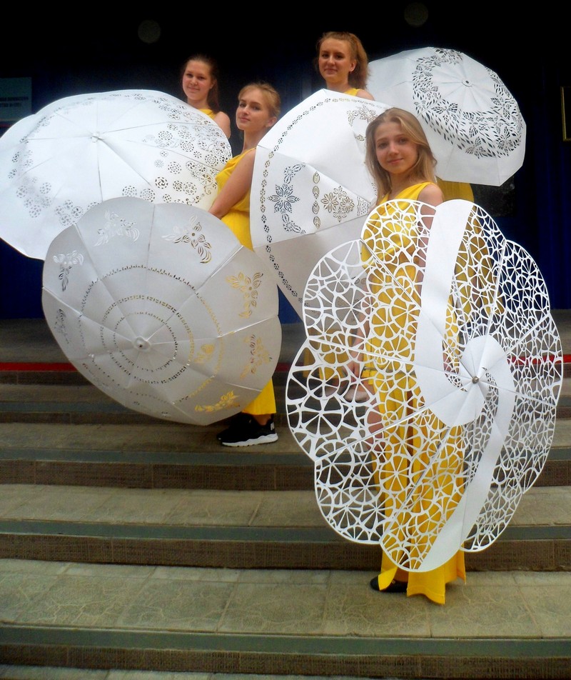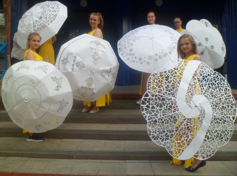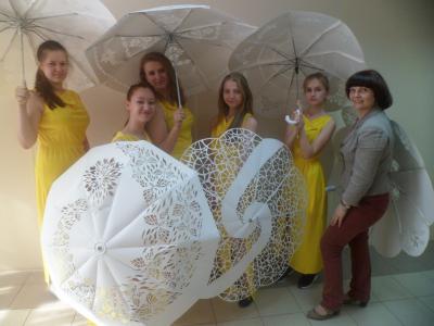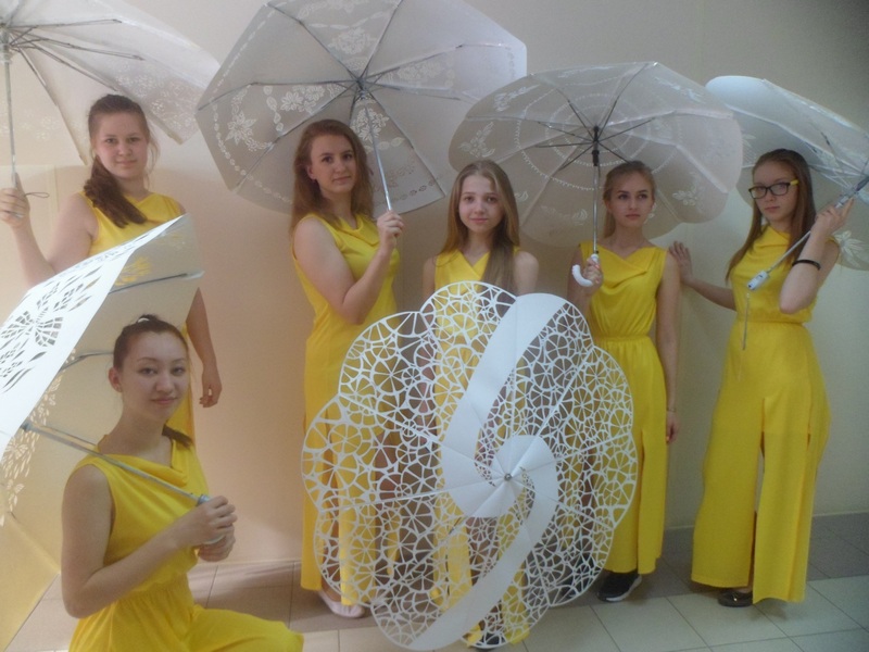 Чем занять третий год обучения? Встал вопрос! И нас посетила идея выполнить модели авторских зонтиков. Встретили трудности на пути возникли трудности в поисках зонта, который больше не используется. подключили весь педагогический состав. После получения зонтиков, а они оказались разной формы. Мы с девочками вспомнили черчение, конструирование, моделирование. Каждый старался разобраться, как построить модуль для конкретного зонта, выбрать свою композицию, воплотить идею и свой замысел индивидуальной композиции.