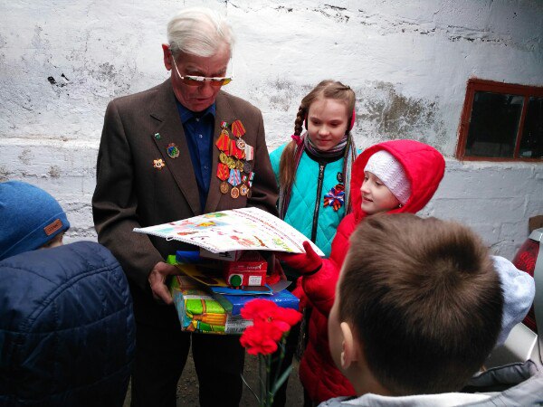 Уже не один год наша школа сотрудничает с Региональным отделением клуба «УАЗ Патриот» города Новосибирска. Накануне праздника Дня Победы участники клуба с нашими ребятами участвуют в акциях «Дорогами войны» и «Посылка ветерану». Ребята начальной школы готовят рисунки, собирают посылки, пишут письма ветеранам и вдовам Великой Отечественной войны, которые живут в отдалённых районах Новосибирска. Рисунки Клуб оформляет в Календарь «Ветеранам Новосибирской области от благодарных потомков». Календари, посылки и письма ребята развозят вместе с участниками Клуба.