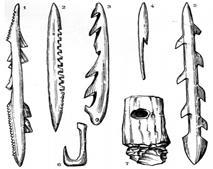 1. Учеными были обнаруженные вещи первобытных людей. 2. Исследовав материалы памятников палеолитического времени, ученые пришли к выводу, что нож появился не позднее чем 40 тысяч лет назад. 3. Каменный топор проделал эволюцию, выражающуюся в следующих этапах: односторонне оббитая галька; двусторонне оббитая галька; рубило; собственно топор. 4. Современные люди несколько раз в день пользуются посудой, но мало кто знает, что уже в неолите ассортимент ее был довольно широк. 5. 7 тысяч лет назад на Нижнем Амуре ели ложками, изготовленными из глины. 6. Ложка делалась из цельной заготовки, часто имела искусно украшенную ручку с навершиями – изображениями различных зверей и птиц.