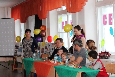 Данная работа велась с начала учебного года. И к моменту проведения коллективно-творческого дела «Слет семей» выяснились участники. В каждом классе нашлось по 2-3 семьи, желающие поделиться соей историей. Для проведения праздника в рекреации третьего этажа были расставлены столы (в школе нет актового зала), накрытые скатертями. Для представления фото и видео материалов установлен экран. Вдоль стен были установлены мольберты с газетами семей о соей школьной истории.