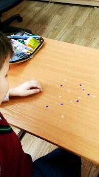 Однажды ребёнок принес разноцветные звездочки из фольги. Они разнообразили нашу работу и сделали её более интересной. Учащиеся выполняли следующие действия: